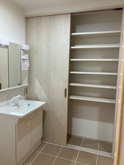 洗面所には大きな収納もあるので
