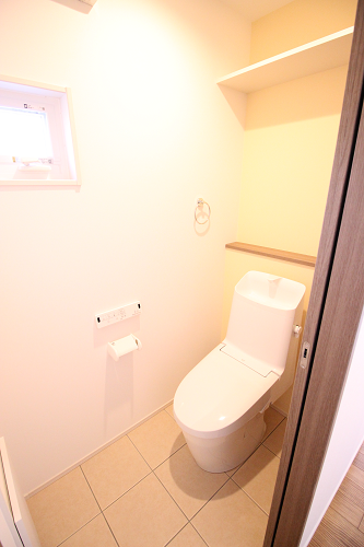 床はタイルを貼っています。1階全室床暖房で足元は暖かく、水が跳ねても床が腐る事もないので安心です。
