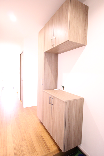 コの字型靴箱で二世帯分の靴を収納できます。