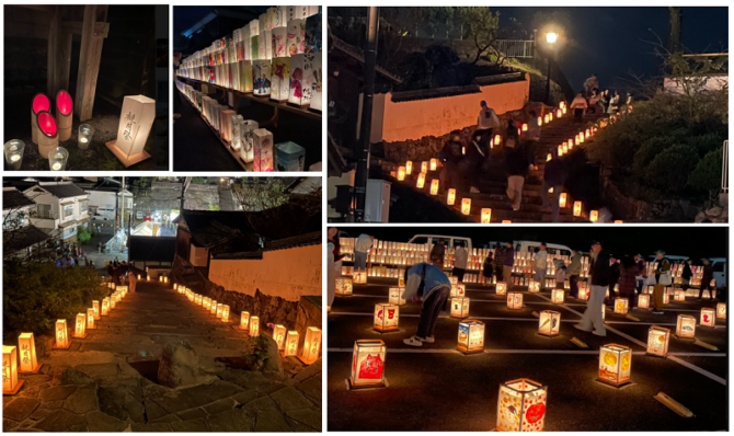 城下町として知られる杵築市は、江戸時代の町並みが今も残っており、会場は和やかな雰囲気。色々な灯籠が並ぶ坂道や路地を歩くと幻想的でした。屋台もたくさん出店しておりかなりの人手でした。毎年の秋の楽しみの一つとなりました。