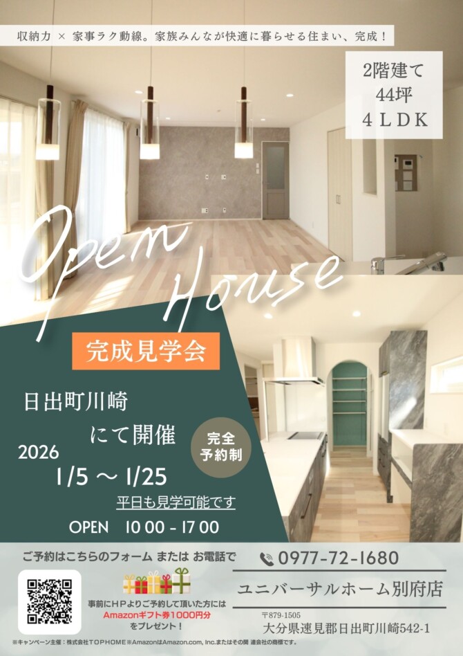 お施主様のご厚意により日出町川崎にて完成見学会の延長が決定しました!