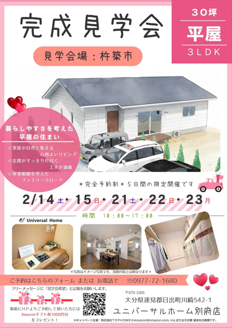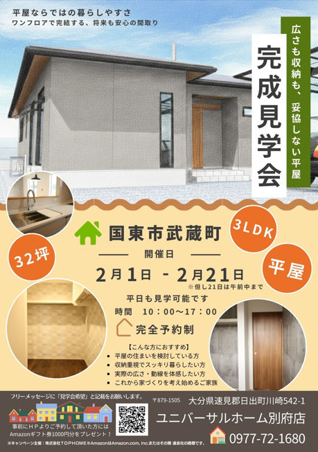 お施主様のご厚意により国東市と杵築市にて完成見学会を開催中です。