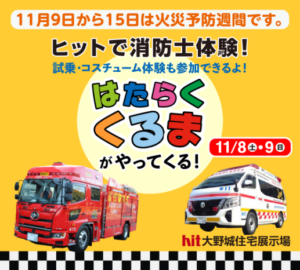 11/8(土)・11/9(日)はたらくくるまがやってくる【hit大野城イベント】