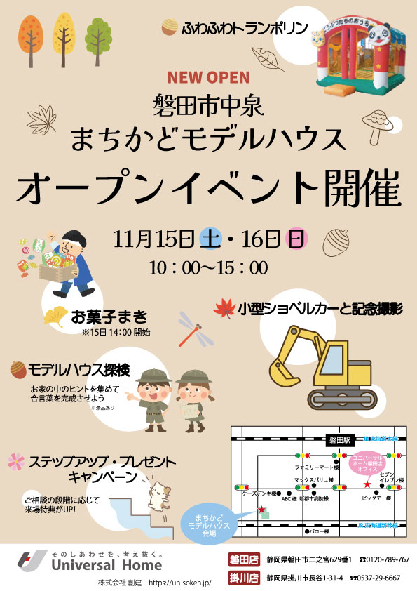 【11/15(土)16(日)磐田市中泉】まちかどモデルハウスOPEN🎈