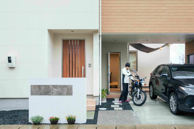 そのまましまえる便利な外部収納付きガレージ
