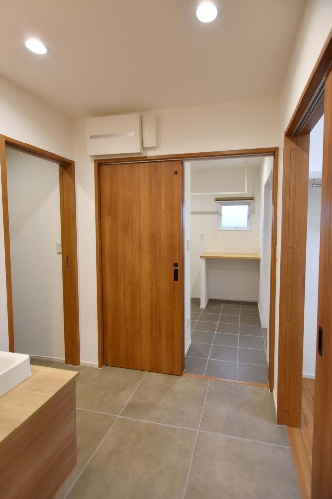 洗面所、パントリーにつながるランドリールーム