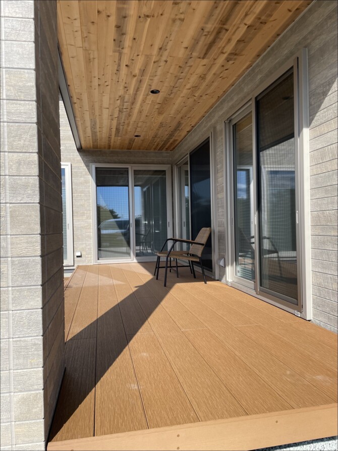 今回は、ウッドデッキとコンテナガレージが新たに完成。