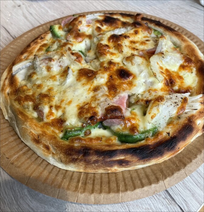 ソースをぬって、チーズをたっぷりのせて……焼き上がったピザは香ばしくて最高の仕上がりに✨