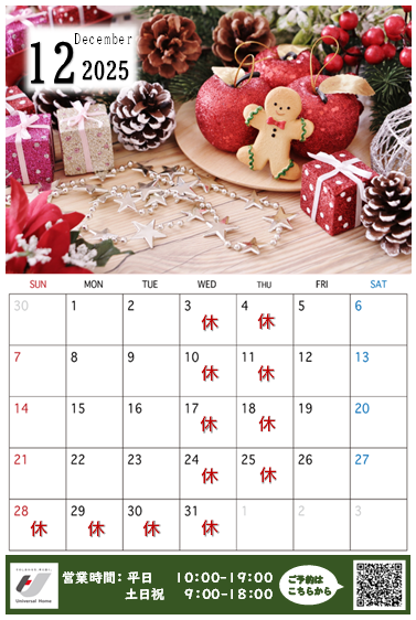 さて、12月のカレンダーを記載いたします✨