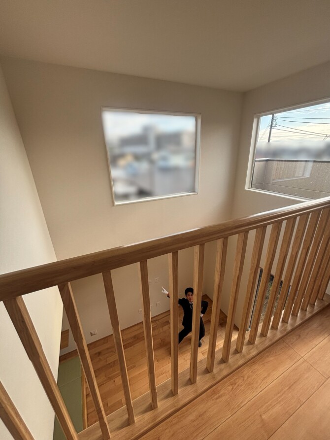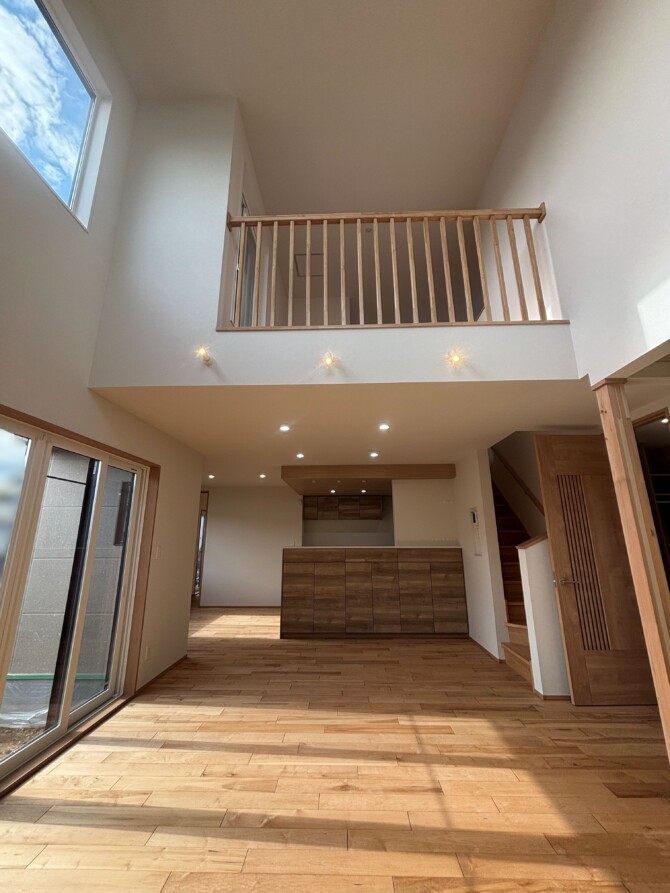 大きな吹抜けで光がたくさん入り明るいです☀️