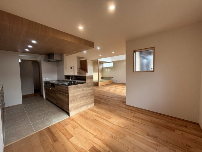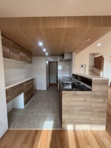 キッチンの天井が木目の下がり天井で素敵です🌳