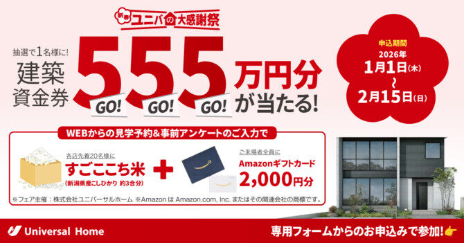 全国抽選で1名様に建築資金券555万円分をプレゼント!
