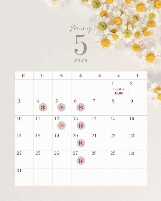 5月の営業カレンダーです☆彡