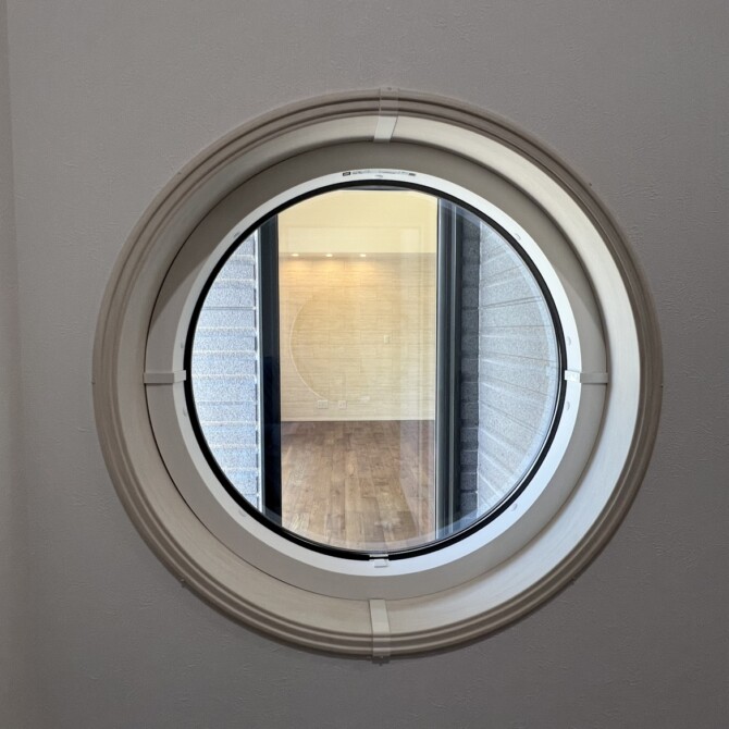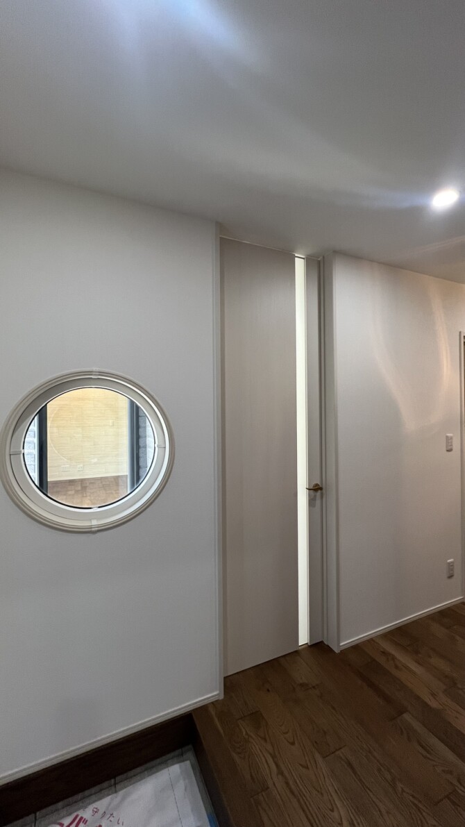 玄関入ると、お手迎えの丸窓「毎日、帰ってくるたびに心がほっこりしますね」