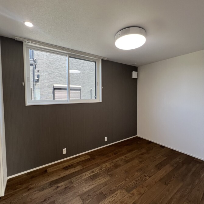1階には、主寝室を設けました。計画的に1面壁を設けることにより、家にいても映画館に行ってるような?大画面スクリーンとなり動画や静止画も映すことができます!