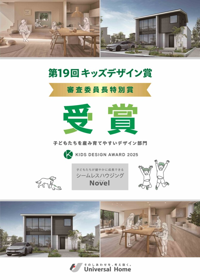 「子どもにやさしい家」が選ばれました。ノベル、キッズデザイン賞を受賞!