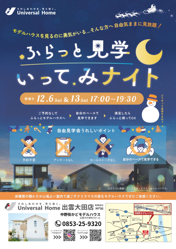 【12/6,13(土)開催】自由見学会『ふらっと見学いってみナイト🌙』のお知らせ