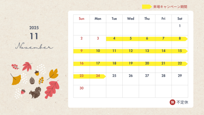 ※ご家族様1組につき初めての来場で1回限りの特典となります。