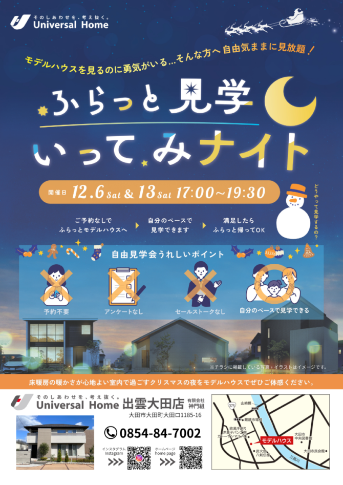 【12/6,13(土)開催】自由見学会『ふらっと見学いってみナイト』のお知らせ