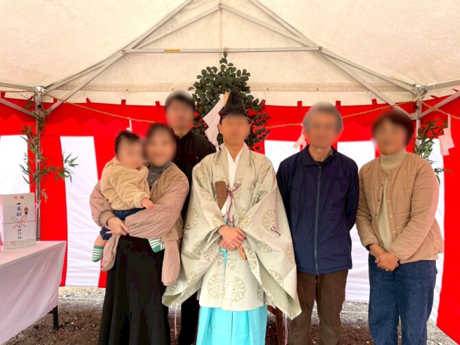 お施主様一家と、ご両親が参加され