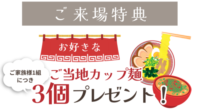 ※ご家族様1組につき初めての来場で1回限りの特典となります。