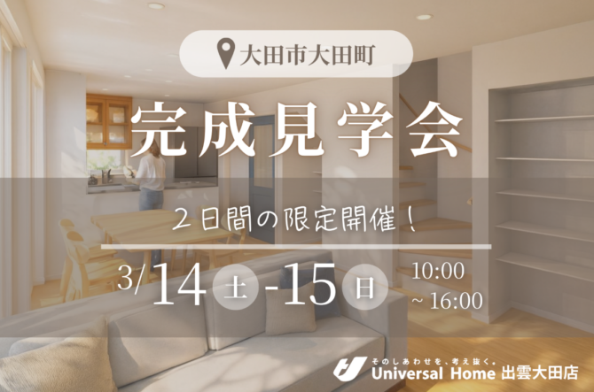 【3/14(土)・15(日)限定】大田市で新築完成見学会を開催✨