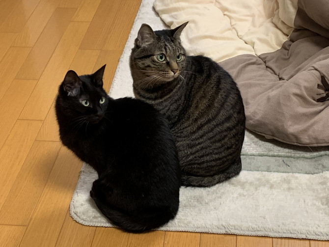 まーちゃん(キジトラ・♂)とるーちゃん(クロ・♀)を飼っています!