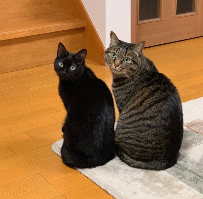 なぜ2匹並んで振り返っているのかは謎なのですが、