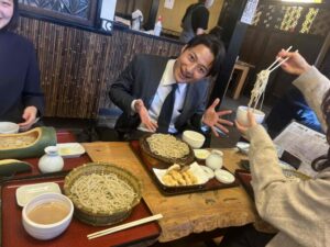 みんなでおそばを食べたり、お団子を食べたりしながら