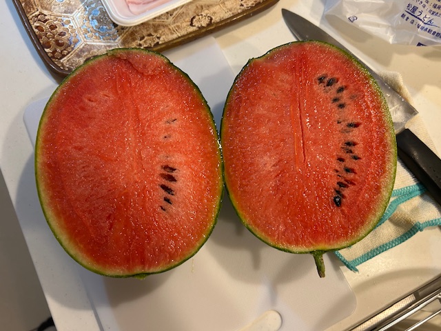 夏の終わり🍉 2025.10.13 皆さんこんにちは(^^)/本日は、月曜担当イッシーこと石橋がブログをアップいたします! 今年最後のスイカが成長したことを、ご報告いたしましたが 母から頂いて、昨日ようやく包丁を入れてみました🍉 ドキドキワクワク👀 恐る恐る切ってみたら… 真っ赤な果肉がお目見えしました!(^^)! 今年最後の豊作に感謝し、美味しく頂きました°˖✧◝(⁰▿⁰)◜✧˖° ユニバーサルホーム久留米店 TEL:0942-35-4880 10:00~18:00(水曜定休)