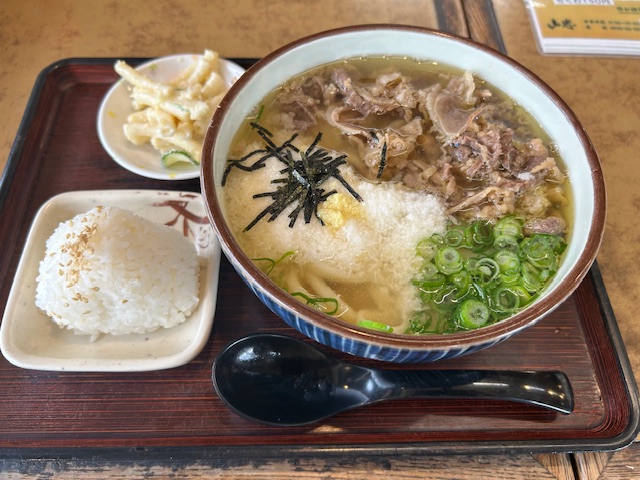 肉うどん山芋トッピング(おにぎり付き)(#^^#)