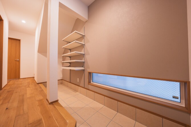FIX窓が玄関に自然光を優しく取り込んでくれます。