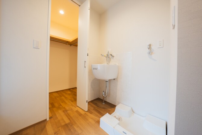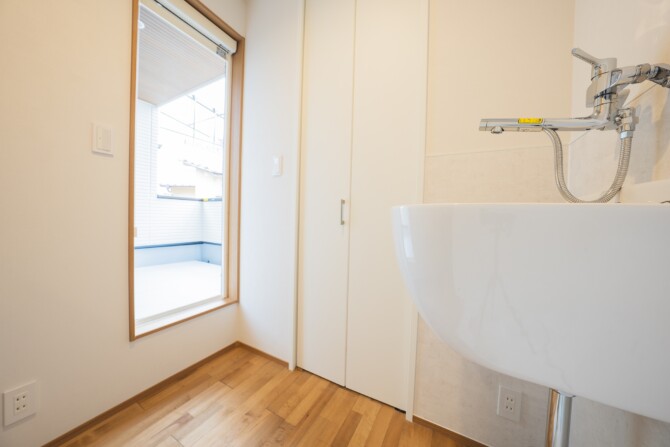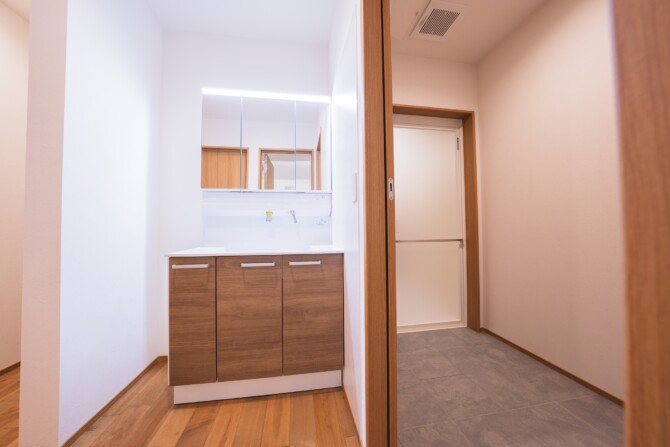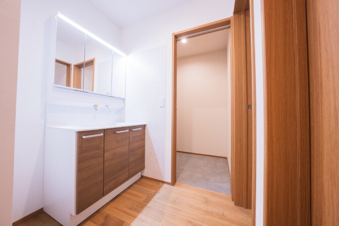 洗面室と脱衣室を分け、部屋をしっかり役割分担させます。