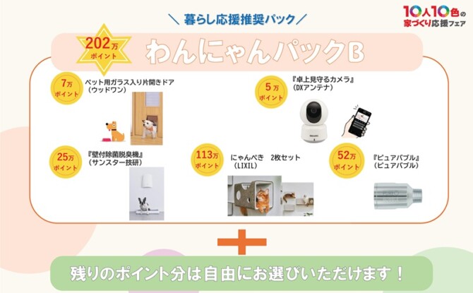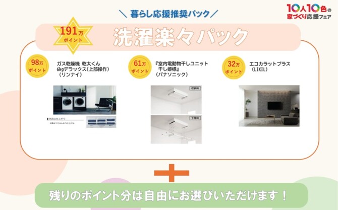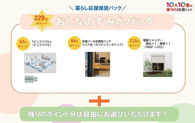 51種類の住宅設備の中からお好きなものを複数プレゼントしています。