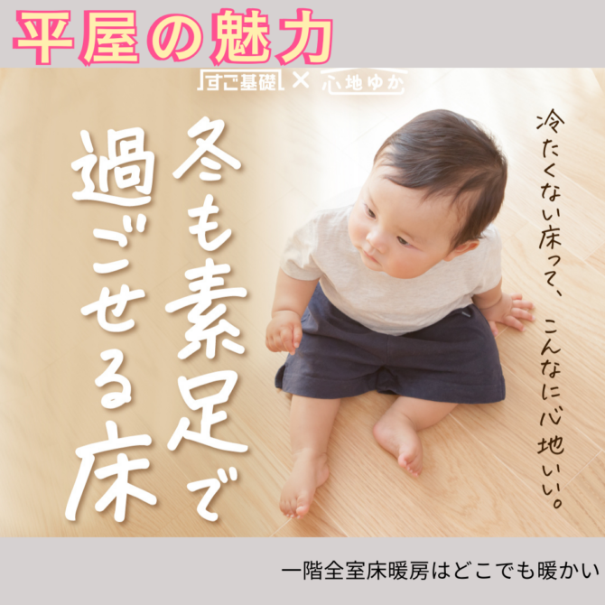 どの部屋にいても足元からやさしく暖まり、家全体が均一にあたたかい空間に包まれます。