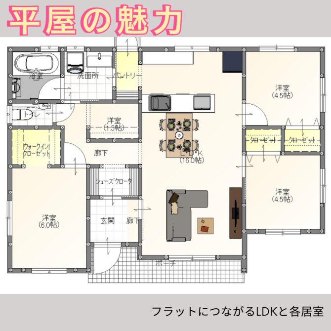 平屋住宅は家事導線だけでなく、