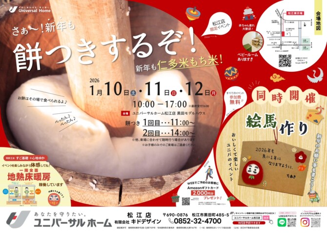 1月10日(土)・11日(日)・12日(月・祝) ★モデルハウス★【餅つき&絵馬づくりイベント】開催