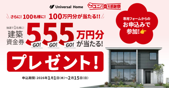 抽選で1名様に 555万円分 の建築資金券が当たるチャンス★