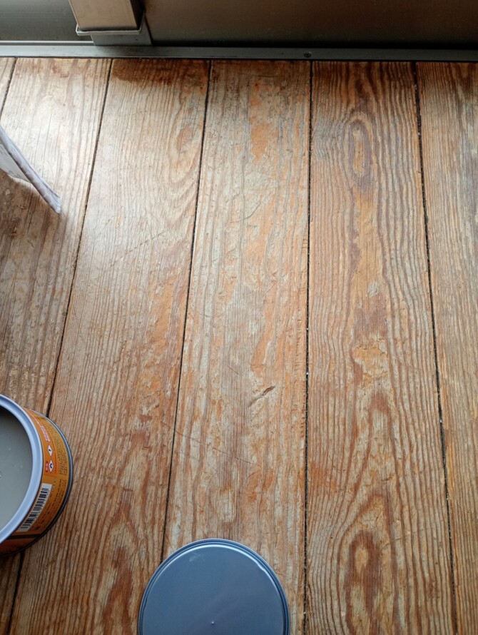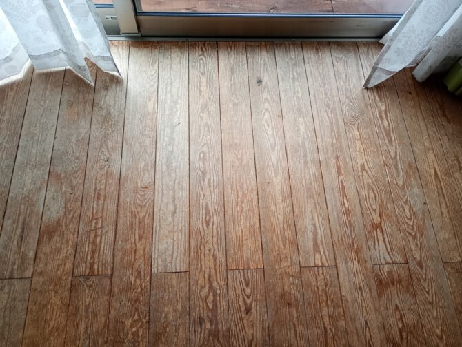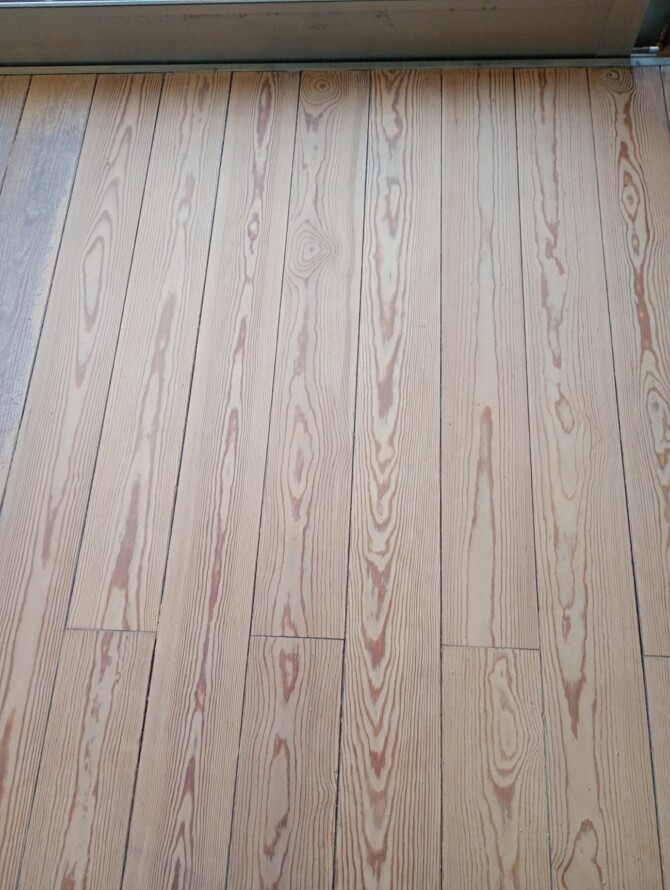 ウチのリビングの床なんですけど、パインの無垢の板を貼っております。