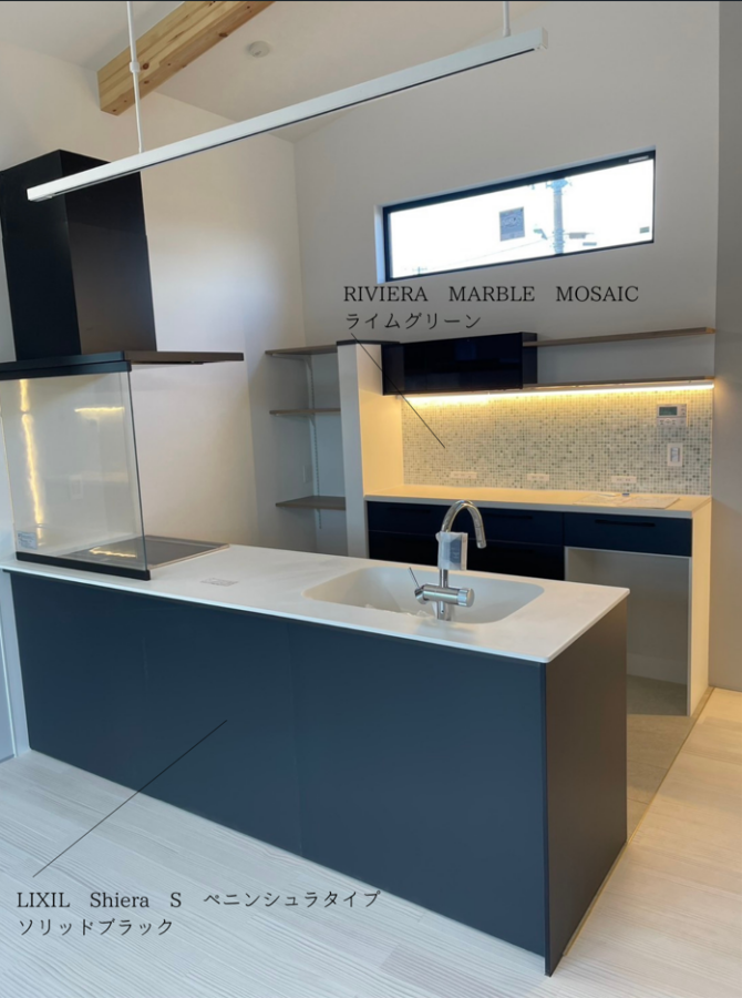 そして背面のカップボードにはリビエラの大理石モザイクがアクセントになってます!うつくしい❤️