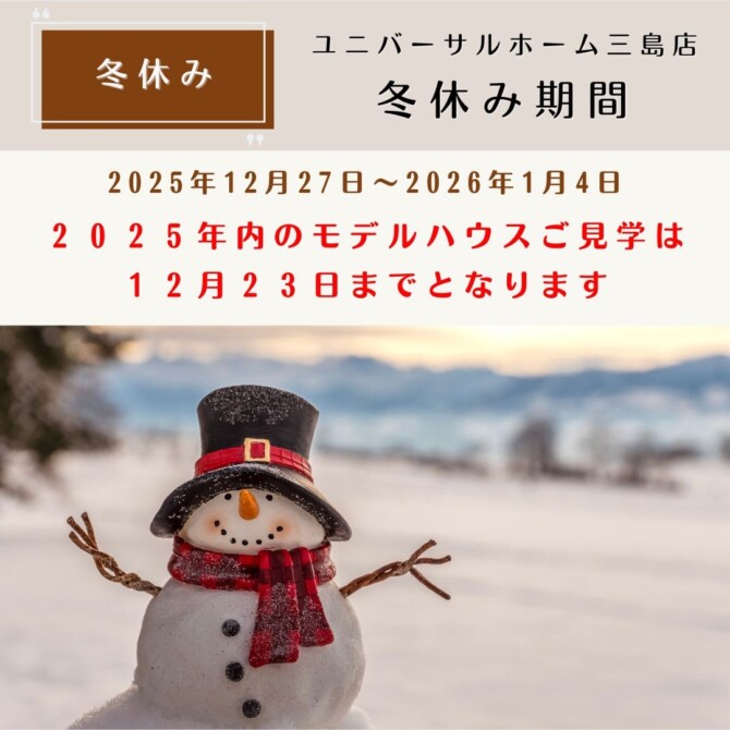 年末年始休暇(2025年~2026年)のご案内【ユニバーサルホーム三島店】
