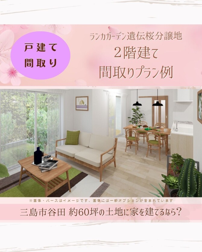 【2階建て間取り プラン例】三島市谷田 約60坪の土地に家を建てるなら?【ランカガーデン遺伝桜分譲地 ユニバーサルホーム三島店】