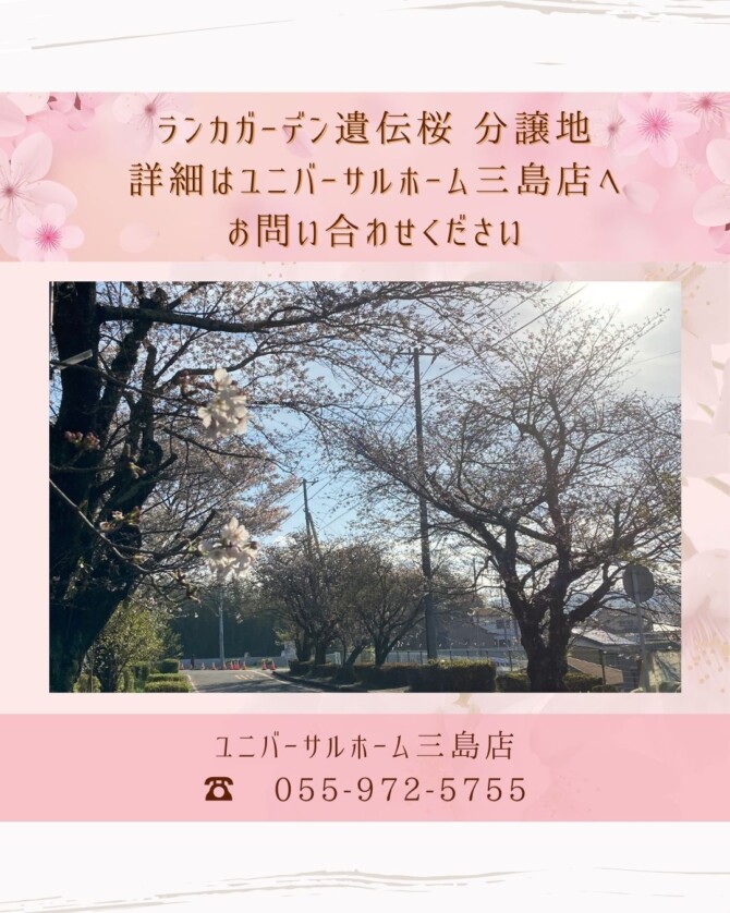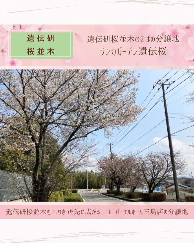 【三島市お花見スポット】隠れたお花見名所 ランカガーデン遺伝桜分譲地そば 遺伝研桜並木【ユニバーサルホーム三島店】