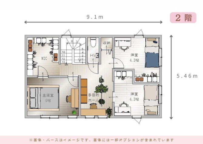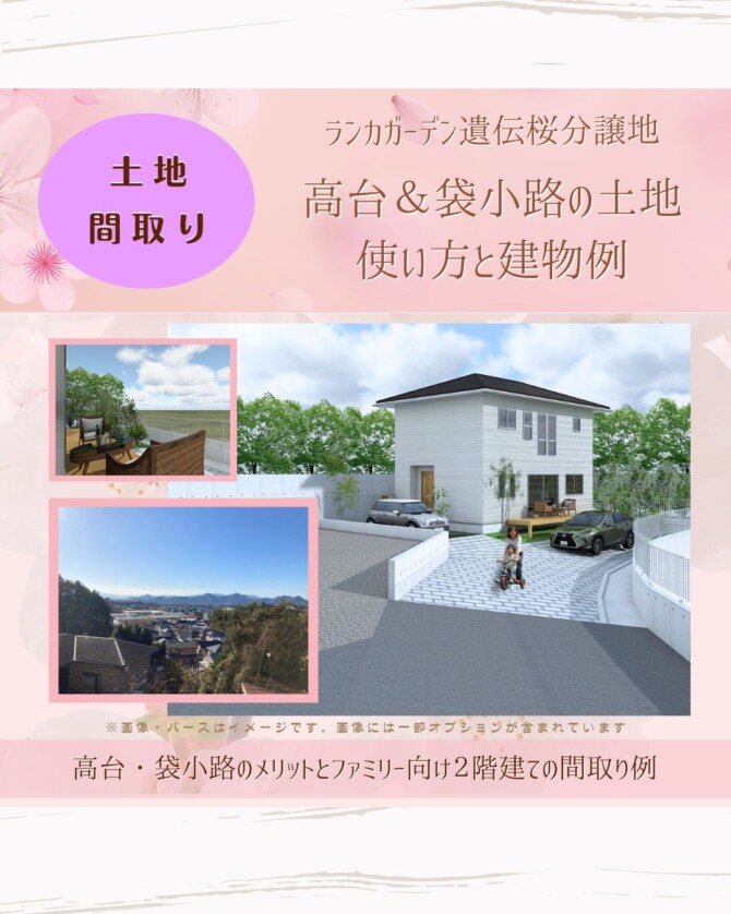 【2階建て間取り プラン例】三島市谷田 約60坪の高台&袋小路に家を建てるなら?【ランカガーデン遺伝桜分譲地 ユニバーサルホーム三島店】