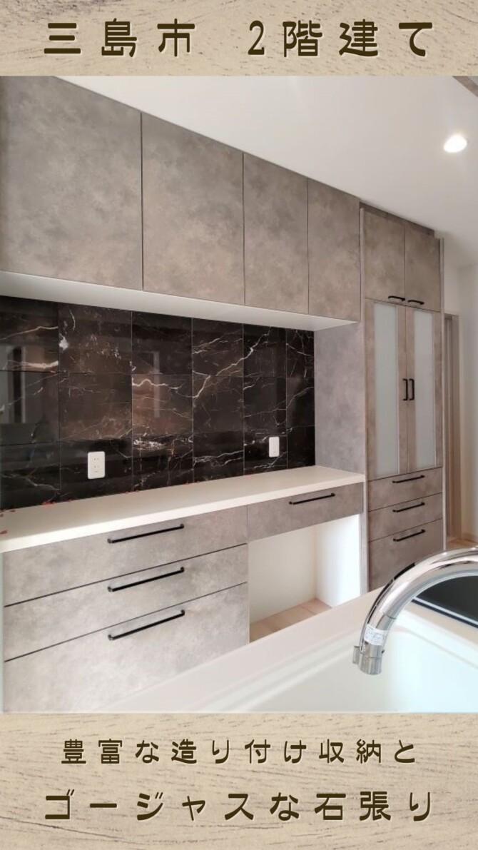 【三島市 新築一戸建て】石タイル張りと豊富な造り付け収納がある家 便利動線も見どころです
