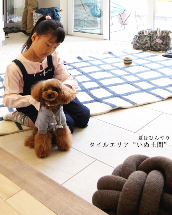 ・夏はひんやりタイルエリア“いぬ土間”