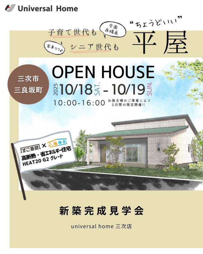 新築『平屋』完成見学会🏠三次市三良坂町🏠
