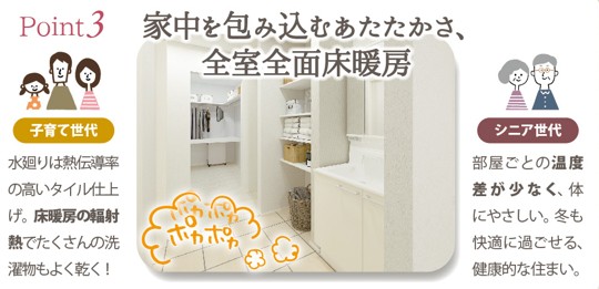 Point3✨ 家中を包み込むあたたかさ、全室全面床暖房