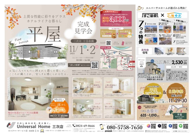 『平屋』新築完成見学会🏠三次市十日市南