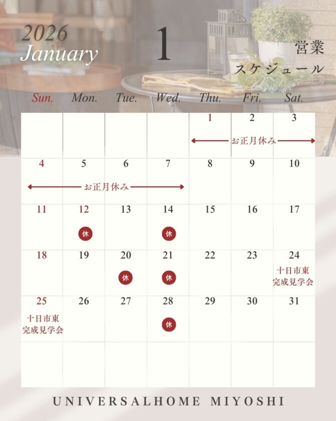 🎍1月営業日のお知らせ🎍ユニバーサルホーム三次店